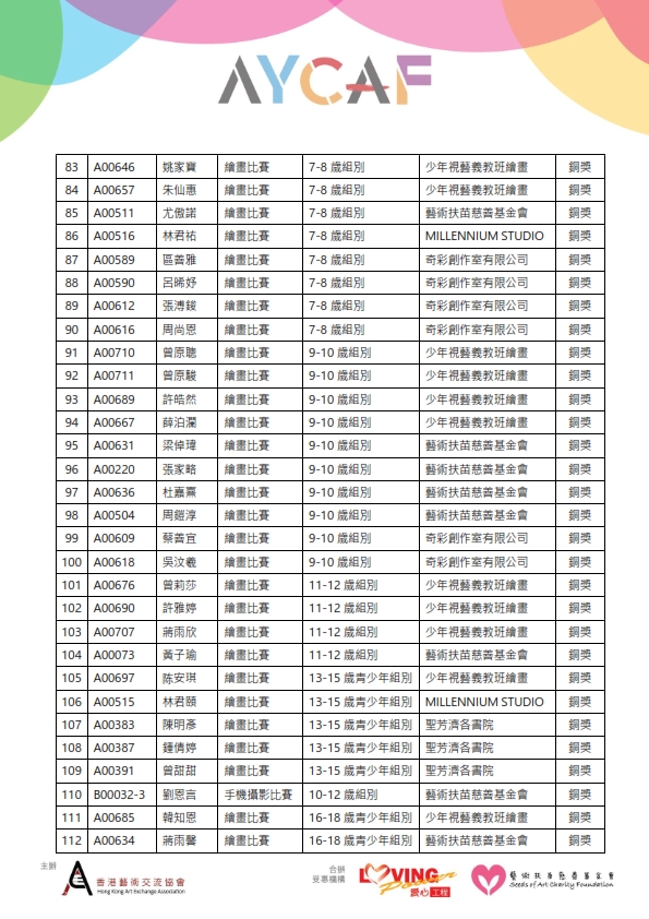 支持機構:香港國際青年藝術家協會、香港青少兒視覺藝術研究學會、國際少兒藝術教育協會, 愛回收iRecycle