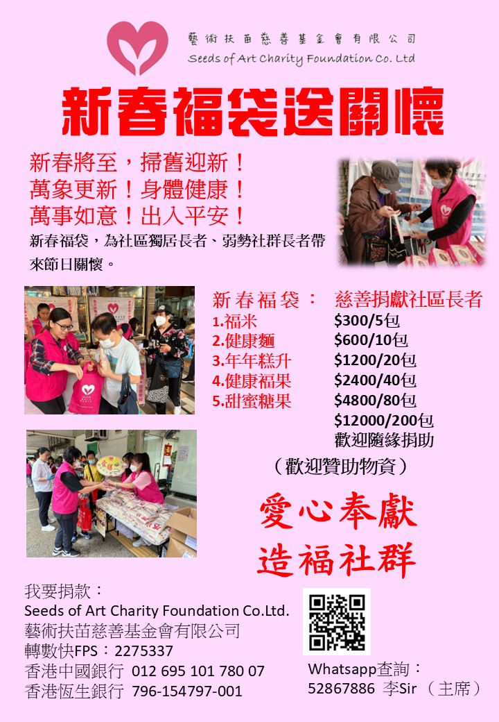 新春福袋,為社區獨居長者、弱勢社群長者帶來節日關懷。