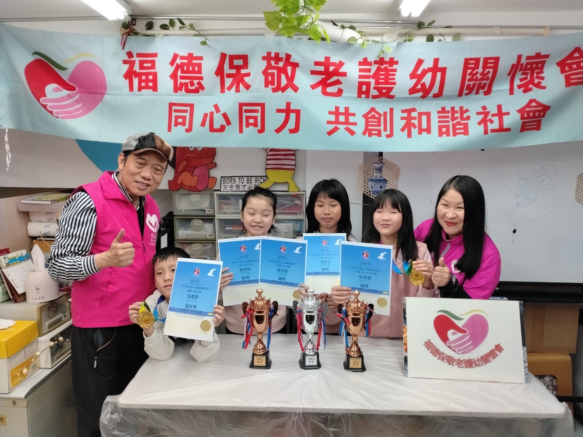 「藝術扶苗慈善基金會有限公司」及「 福德保敬老護幼關懷會」 聯合合辦✨「 少兒視藝義教班」非常感謝,「福德保 敬老護幼 關懷會」提供免費塲地的,由2025 年5 月至現在,並且同時感謝兩位主席,許主席及Yvonne Lai,以及各位義師們,義工們及家長們,欣賞大家,無私的付出時間和心力;佈置場地和收塲,以及攝影。