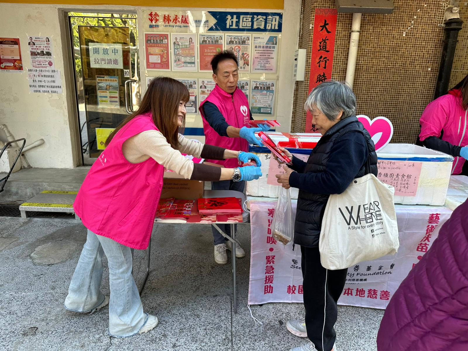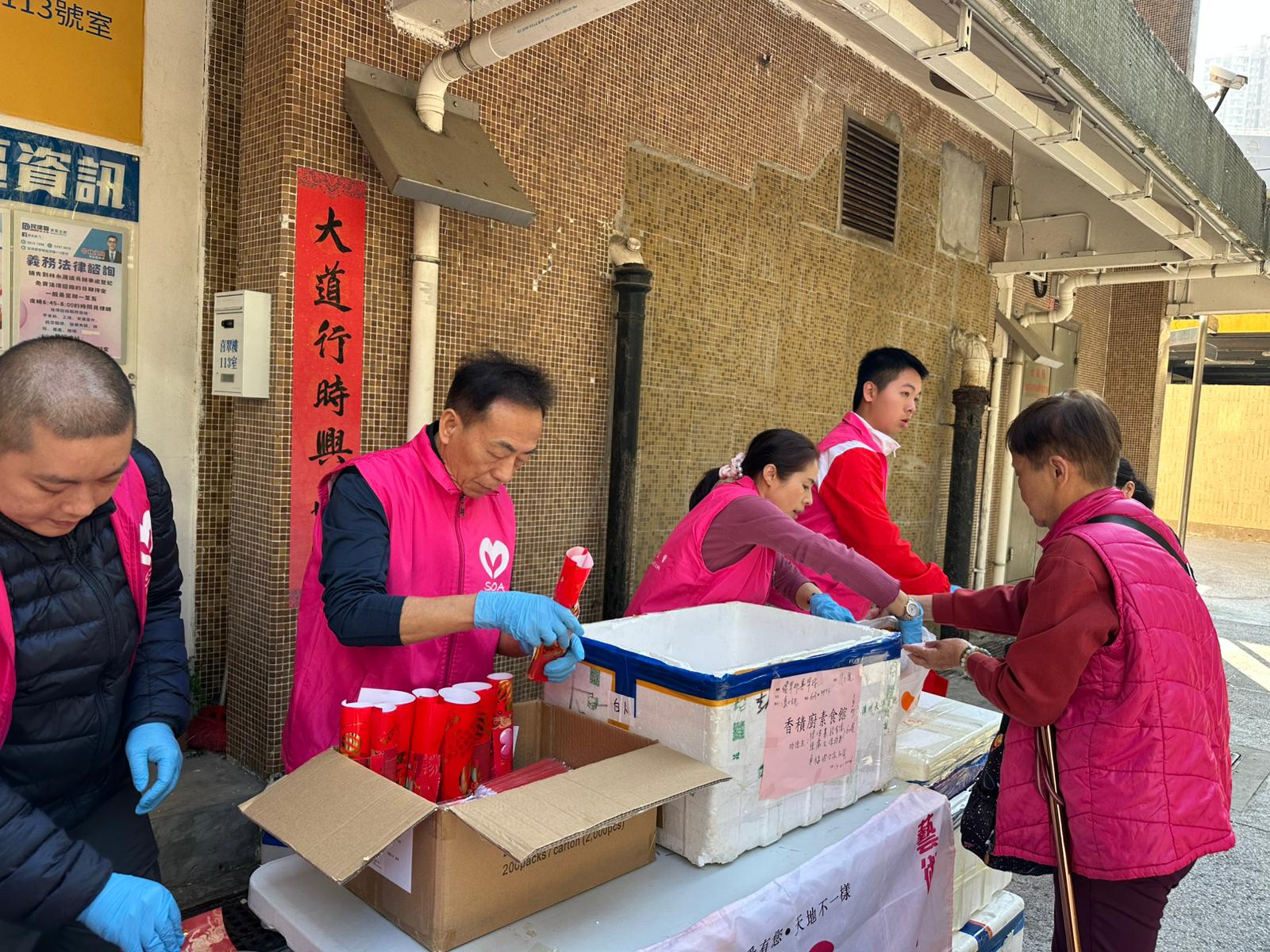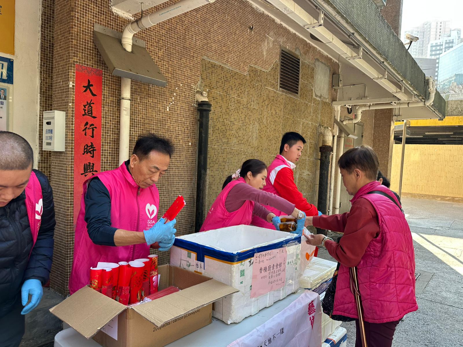 大年初一,喜結善緣,喜氣洋洋💖!義工們在新春佳節也出來幫忙做義工,真的非常棒,必須給一個大大的讚👍!義工們早早到場準備,街坊們很守秩序,一個跟一個排隊。大家接到熱辣辣的愛心素食飯盒、賀年揮春還有利是封🧧,超級開心🥳!義工們和街坊們也互相送上新春祝福,㊗️福大家馬年大吉大利,平安喜樂🌹!