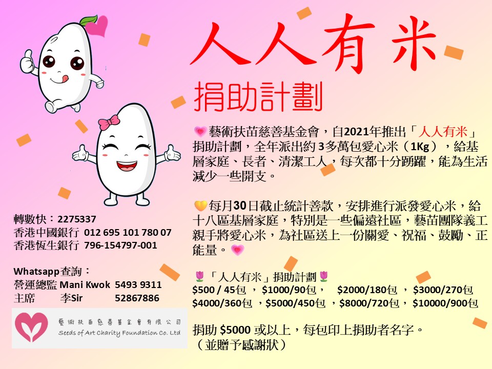 也非常感謝藝術扶苗慈善基金會贊助愛心素食飯盒,愛心奉獻,造福柴灣區街坊❤️